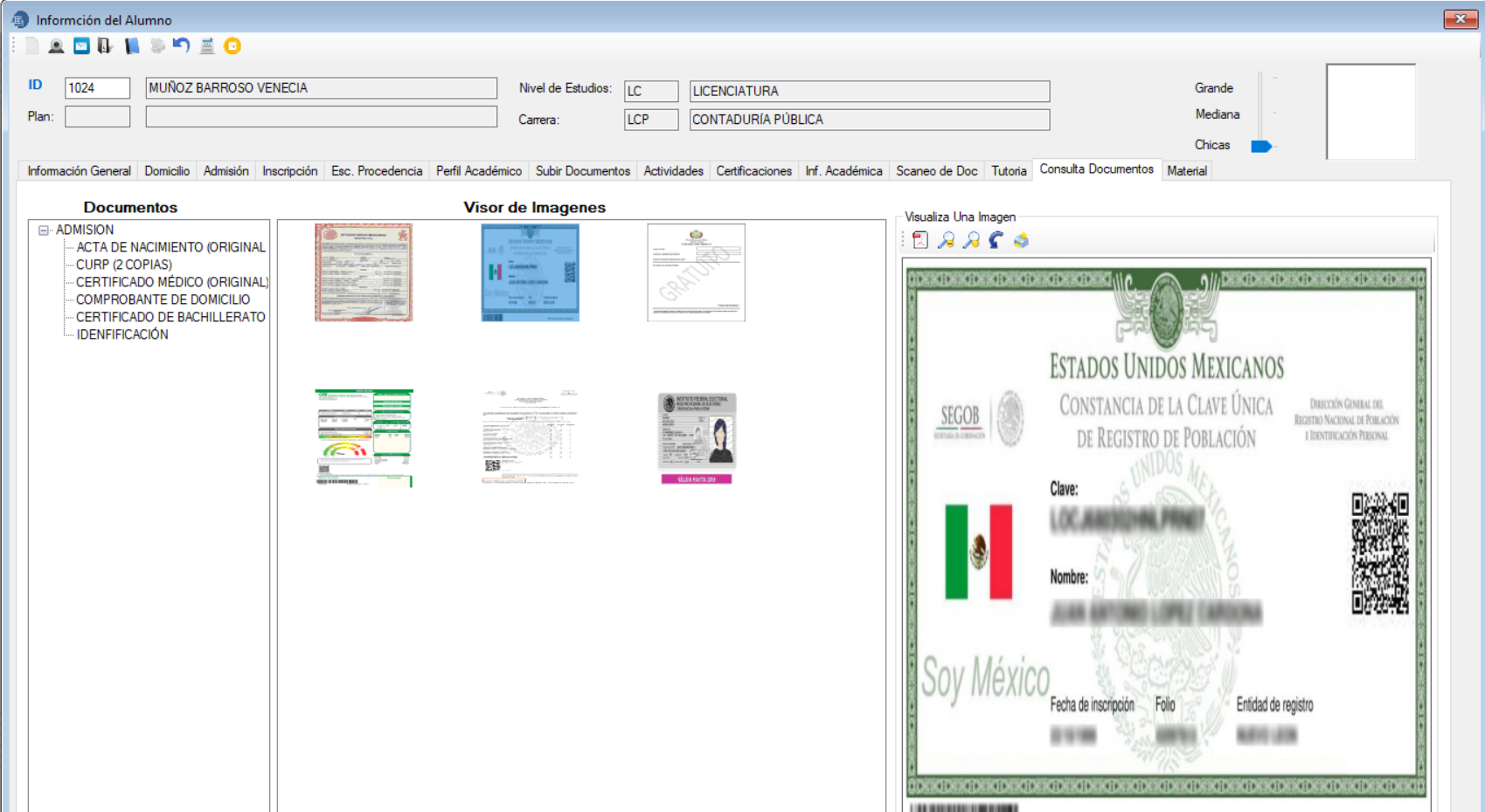 En el expediente del alumno se registra: datos personales, registro como aspirante,